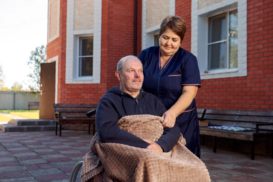 Внутри пансионата для пожилых Коломна от Осень жизни все коридоры оборудованы поручнями, в сан узлах ровные полы. Опытный персонал проработал в нашей сети от трех лет и обладает большим опытом работы с пожилыми людьми. Большая территория для прогулок с лавочками и беседками для комфортного отдыха и реабилитации.